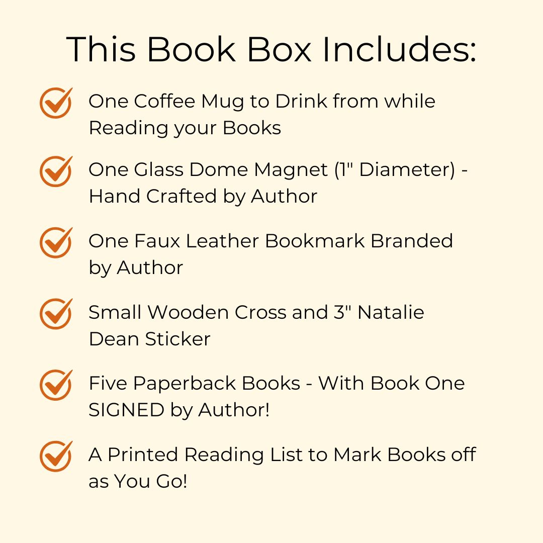 Don’t miss this chance to save 20% (compared to retailers) when you grab all five PAPERBACKS together in one sweet deal! Plus, get your exclusive author swag that can only be found at Natalie Dean Books.
